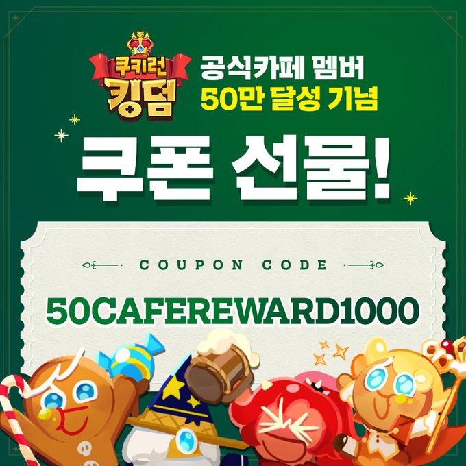 <쿠키런: 킹덤>의 공식카페 멤버 50만 명 달성!