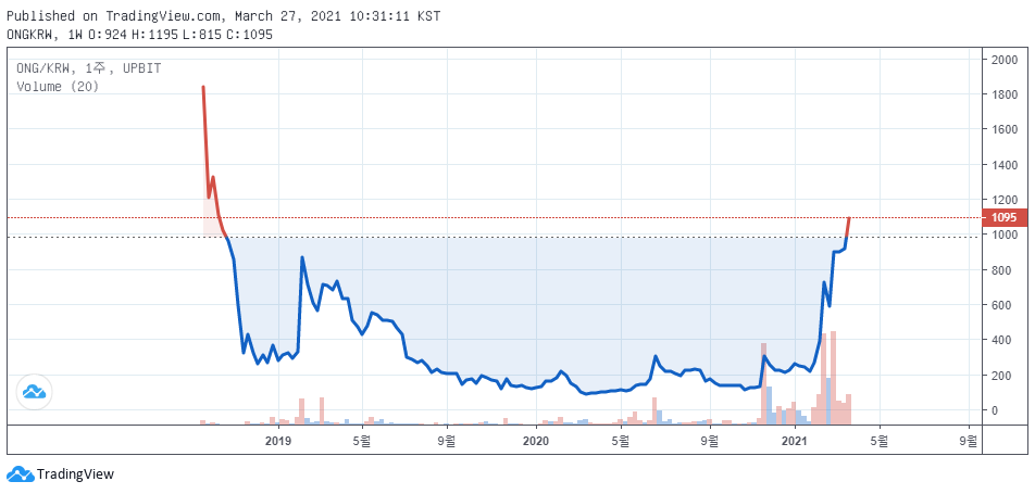 차트를 살펴보면, 확실한 것은 단타로 수익을 내기 상당히 어려운 코인이라는 것이다. 처음 상장했을 때의 가격을 아직 회복하지 못하고 있다. 다만, 장기적인 투자 관점에서는 포텐셜이 확실한 코인이라는 생각이 있기 때문에 가치투자 개념으로 접근하는 것이 합리적이다.