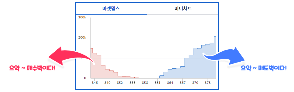 예를 들어, 위의 코인에서 859원에 코인을 매집했다면, 매수벽(살려고 하는 사람)보다 매도벽(팔려고 하는 사람)이 깊기 때문에 하락세일 확률이 높습니다. 하지만 막상 코인시장에서 투자를 해보면 별로 의미가 있는 것 같진 않더군요.