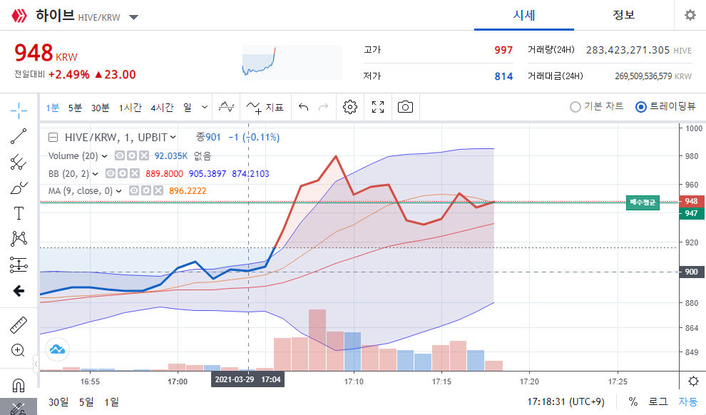 평단가 910에 물려버린 하이브(HIVE) 코인
