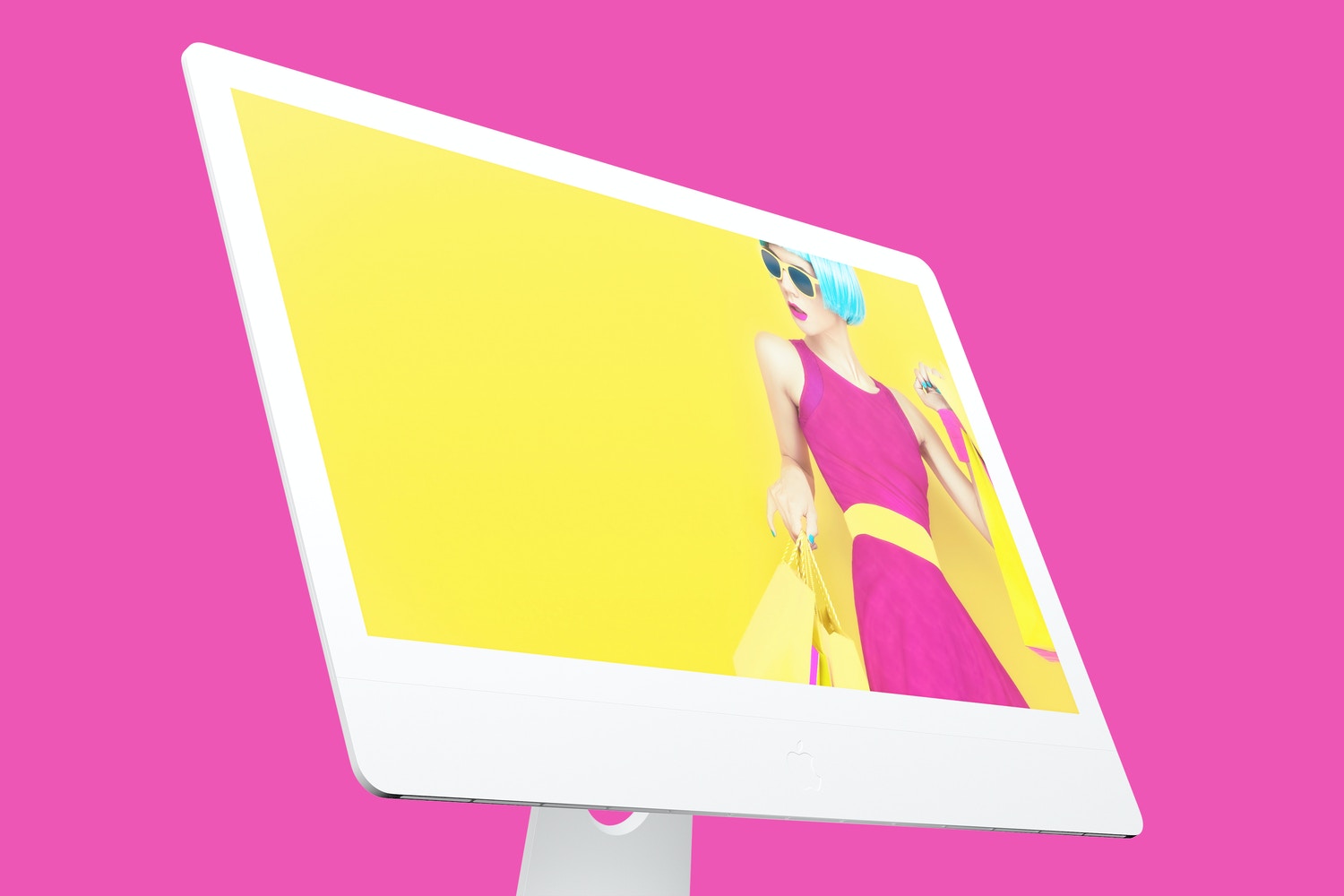 iMac 27" Mockup 디스플레이의 클로즈업 뷰에서 미리 볼 수 있습니다. 클레이 목업으로 측면의 색상을 변경할 수 있는 PSD 파일을 완전히 사용자 지정할 수 있습니다.