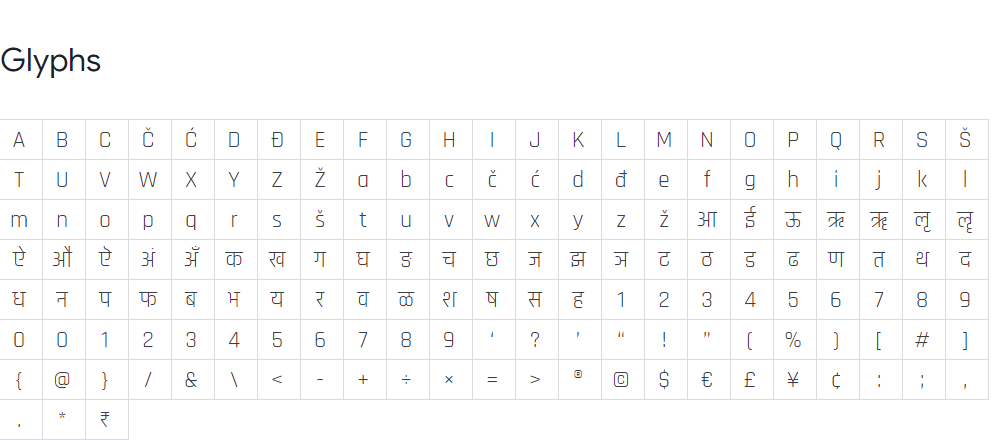 라즈다니는 모듈화 된 문자 형태를 가지고 있으며 데바나가리와 라틴어 문자 체계를 지원한다. 정사각형의 응축된 외형은 기술적 또는 심지어 미래적인 것으로 해석될 수 있다. 전형적으로 둥근 그릇들과 다른 문자 형태 요소들은 라즈다니에서 곧은 면을 가지고 있다. 스트로크 단자는 일반적으로 대각선이 아닌 수평 또는 수직의 평면 선 세그먼트로 끝난다. 그들의 모서리는 약간 둥글어서 획을 긋는 끝은 뾰족한 끝보다는 부드러운 느낌을 준다.