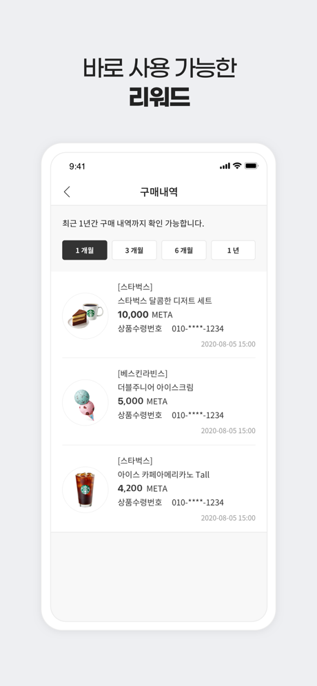 - 받자마자 사용 가능한 리워드, 기프티콘/현금으로 바꿔보세요.