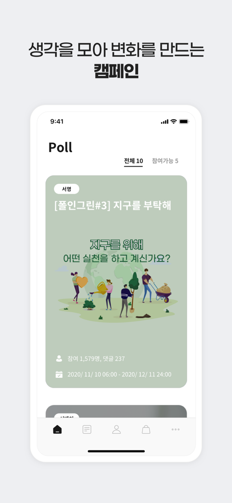 - 서명운동 : 공감하는 캠페인을 지지할 수 있습니다.
