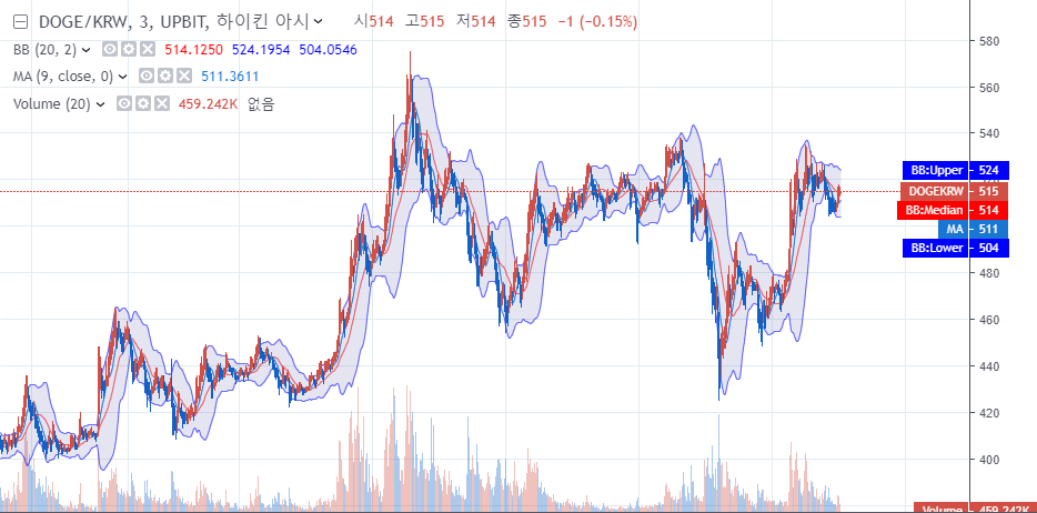 비트코인이나 다른 코인들과는 달리, 거의 독보적으로 차트를 그리고 있는 것이 바로 도지코인입니다. 비트코인이 급락하거나 하락하는 것과는 다르게 오히려 횡보를 하며 지지선을 버텨주고, 빠르게 회복하고 있습니다. 어제 도지데이에는 무려 560선까지 고점을 찍었고, 이후 계단식 하락을 할 것으로 많은 사람들이 예상했지만, 바로 반등에 성공하며 500 초반대를 유지하고 있습니다.