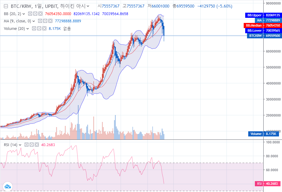 요즘 개인적으로 천하제일 단타대회가 열려서 열심히 단타를 하고 있습니다만, 홀더 포지션에서는 고점에 물릴 수 있는 장이라고 할 수 있겠습니다. 비트코인의 7300선이 깨지더니, 금일(20)은 7000선이 깨졌습니다. 그리고 현재는 6900선까지 내려앉았습니다. 즉, 최근에 비트코인이 가파르게 상승했었기 때문에 상승이 큰 만큼, 하락도 크다고 볼 수 있겠습니다. 그래서 스캘핑이나 짧은 단타가 아니라면 손해가 극심해질 수 있는 장이라고 말할 수 있겠습니다.