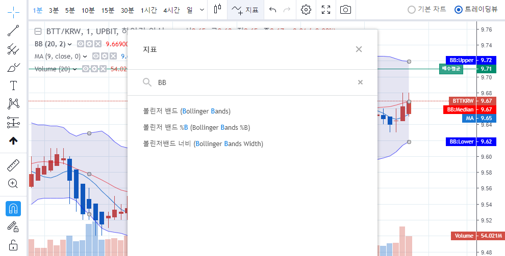 2. 업비트에서 볼린저밴드(Bollinger Band) 설정