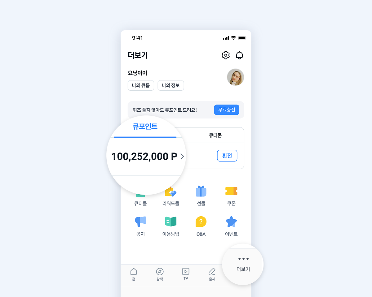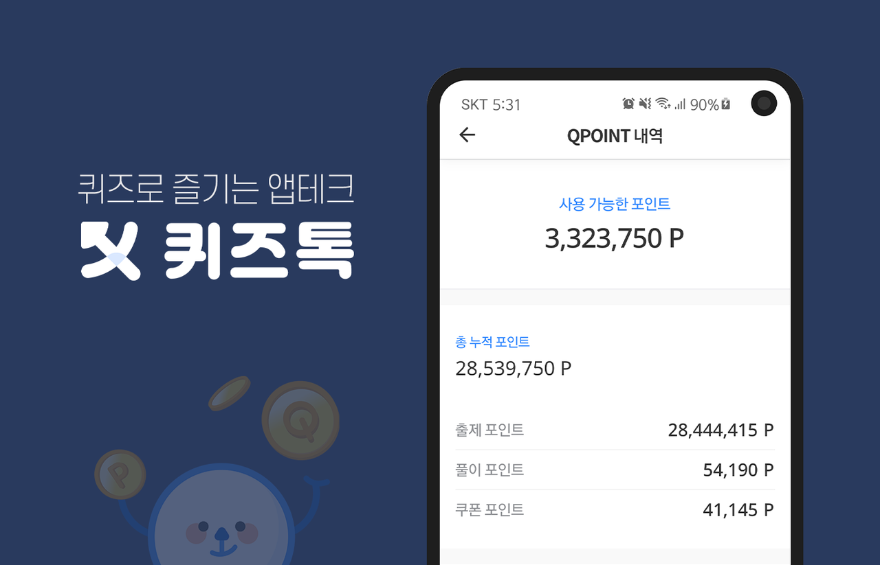 - 퀴즈톡 유저는 퀴즈를 풀고 광고 노출이 되면 각 퀴즈에 할당된 보상 포인트를 받습니다.