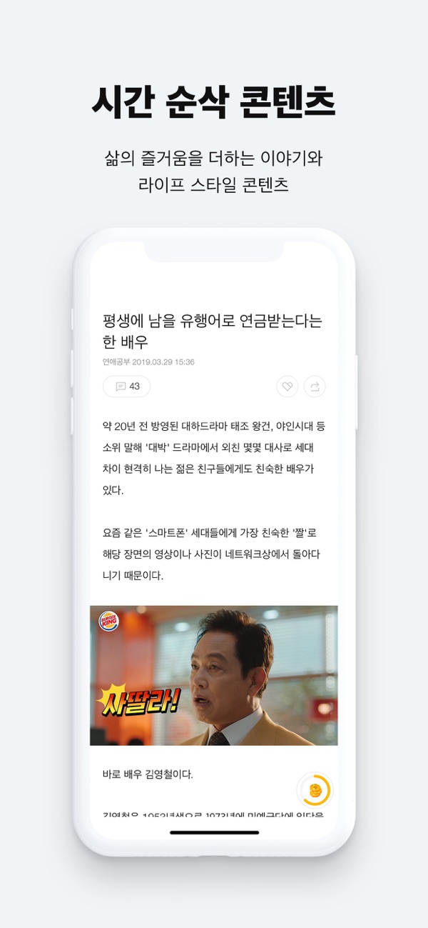 때로는 가볍게, 삶의 즐거움을 더하는 이야기와 라이프 스타일 매거진 핫한 영상 클립 등 무료한 일상을 풍요롭게 해줄 콘텐츠를 만나보세요.