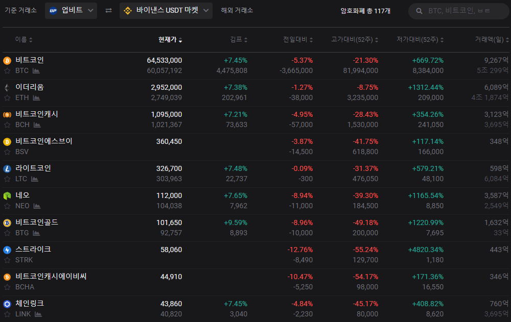 은성수 금융위원장의 거래소 폐쇄 발언과 여러 악재가 겹치면서 국내 비트코인의 시세가 급락하고 김치 프리미엄이 빠지고 있으나, 그동안 비트코인이 오랫동안 상승 장세를 유지하면서 짧은 기간 내 급등했던 것을 고려한다면 생각보다 크게 떨어지진 않았습니다.