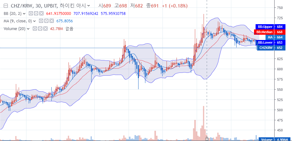 칠리즈의 이상적인 매수 가격대는 600원대 초반이라고 생각합니다. 어제 29일 약 10%의 급등이 있었고 천천히 계단식 하락으로 내려오는 중입니다. 무려 730원대까지 올랐던 가격은 현재 650원으로 약 80원이 빠진 상태이며, 600~630원대로 가격이 조정되지 않을까 예상합니다.
