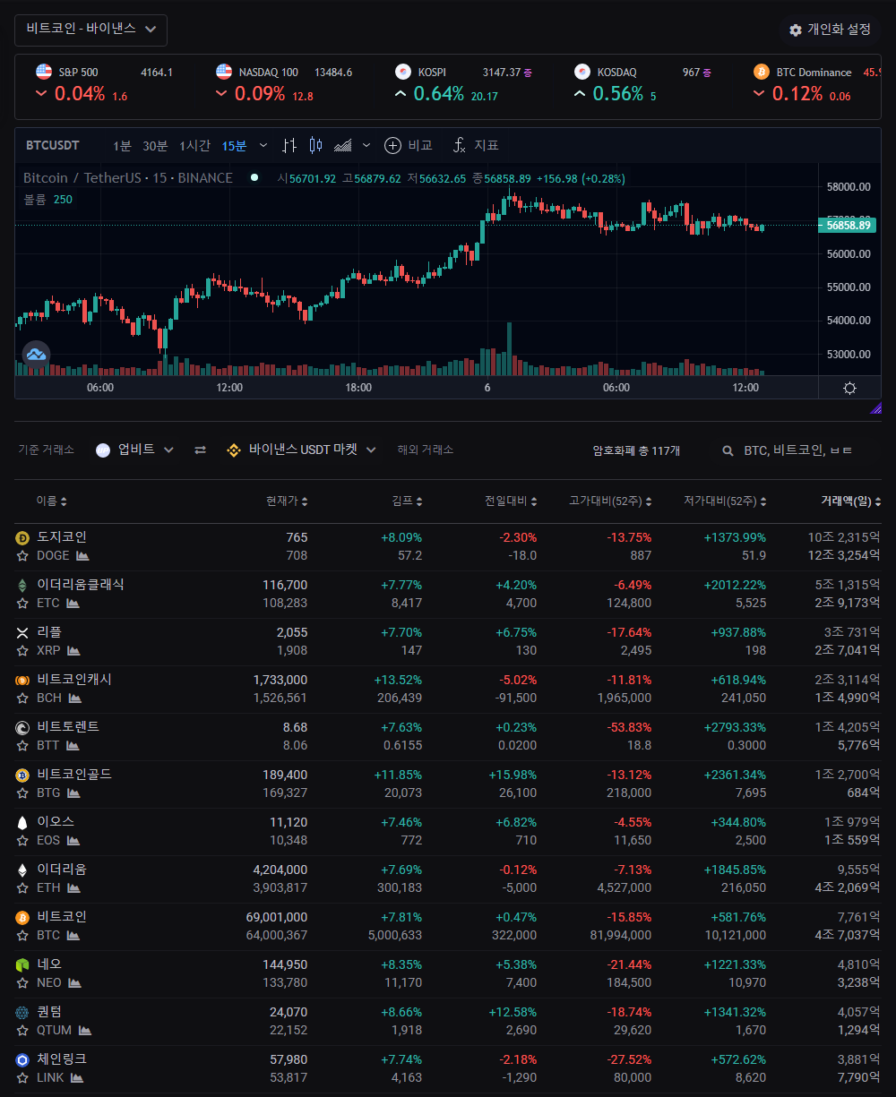 그러나, 확실한 것은 아니다. 그저 신기할 뿐이다. 가격이 일제히 빠지거나, 올라가거나, 그래서 우리와 같은 개미들은 김치프리미엄이 10%가 넘어가면 우려할 수밖에 없다. 10%도 우습다. 10~20%가 되면 말 그대로 그만큼의 리스크를 가지고 투자를 하는 것이다. 이는 해외 거래소(바이낸스, 크라켄 등)를 참고하면서 비트코인 시세를 따라가는 것에 대한 믿음을 산산이 부숴준다.