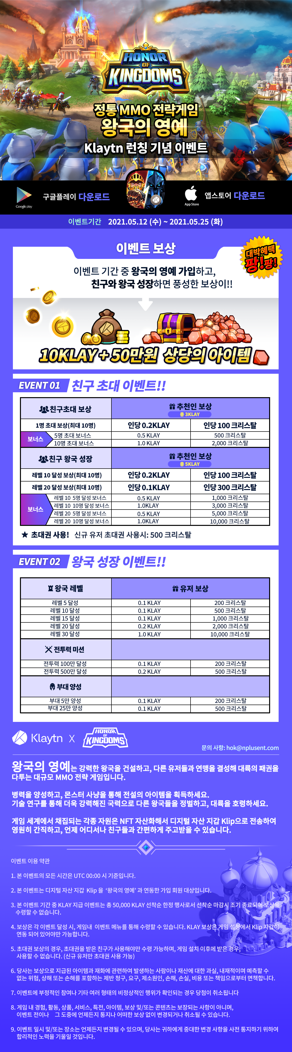 - 이벤트 보상으로 지급되는 KLAY는 총 50,000 KLAY로 소진 시까지 선착순으로 지급됩니다.