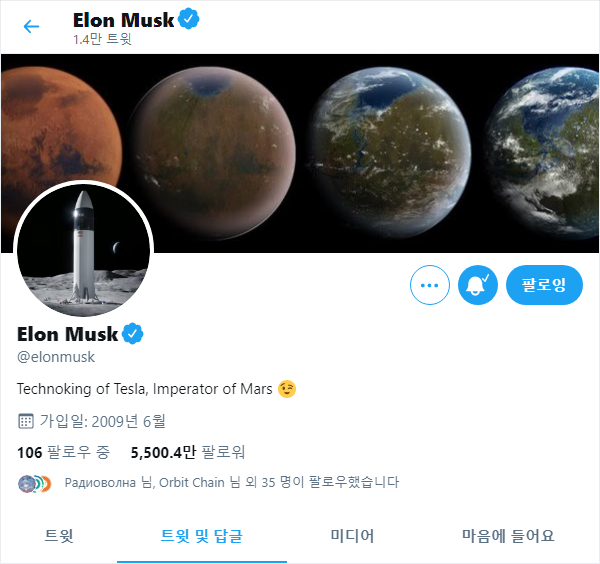 일론 머스크의 트윗 한 방이라면 시세가 급락하기도, 급등하기도 합니다. 이는 코인뿐만 아니라 나스닥도 마찬가지입니다. 해외 주식을 하신다면 일론 머스크의 트윗을 눈여겨볼 필요가 있습니다. '테슬라'의 주식이 어떻게 될지 일론 머스크의 트윗을 통해 알 수 있을 것입니다.