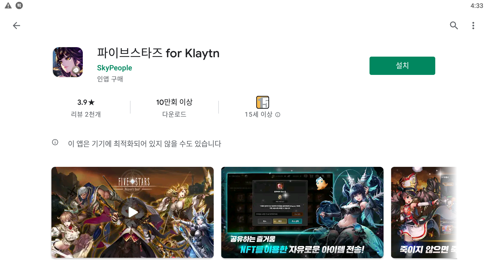 파이브스타즈 게임 평가 및 스크린샷