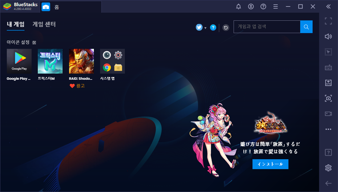 블루스택으로 트릭스터 설치라도 하려면 일단 블루스택 멀티 매니저로 블루스택 64비트를 설치해야한다. Nougat 64-bit로 설치해서 실행하고 구글 계정과 연동한 다음 구글 플레이스토어에서 트릭스터M을 검색하면 설치할 수 있다. 하지만, 그 이후부터는 뭘 설정하더라도 실행이 안된다.