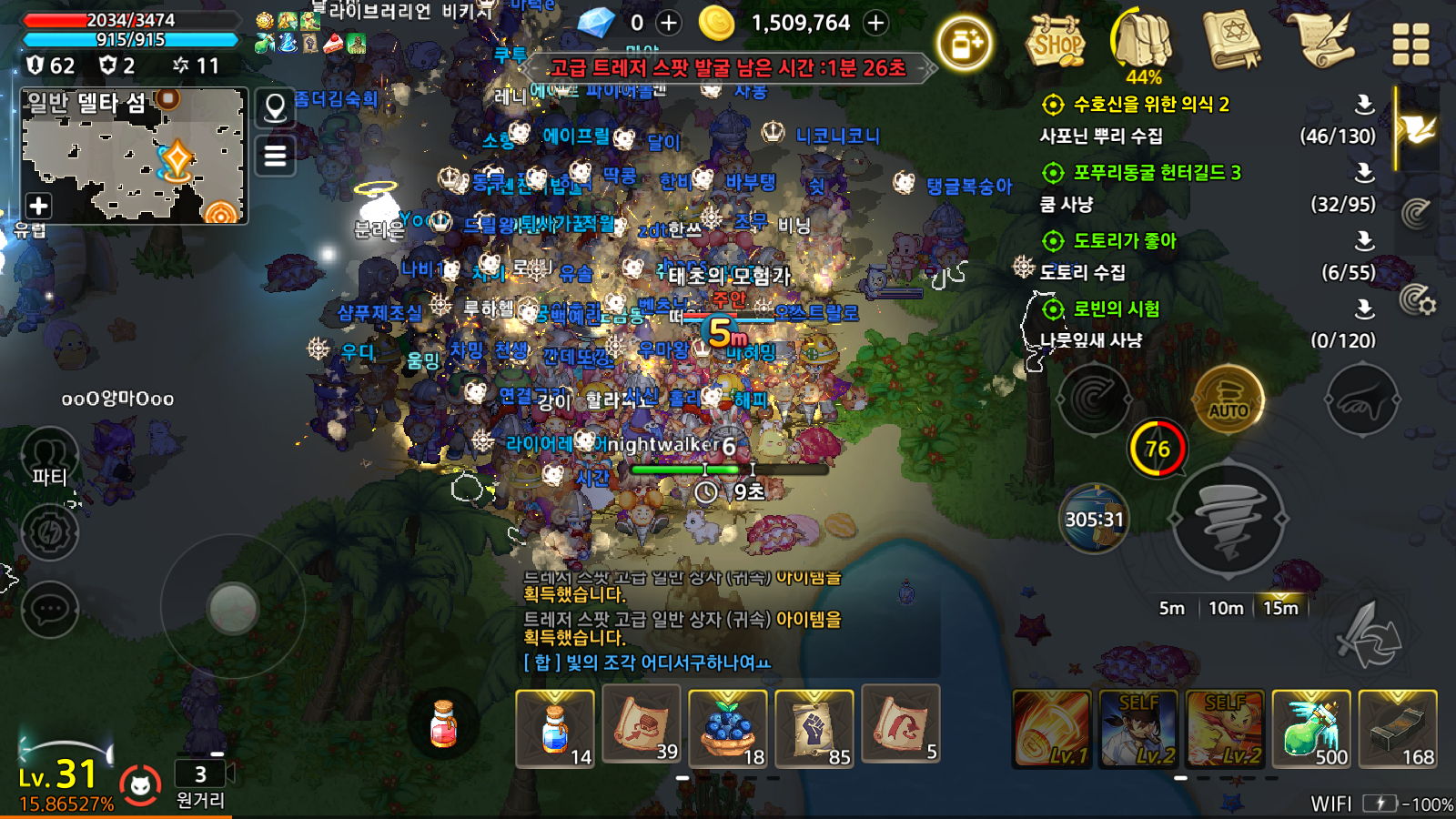 전체 채팅창에 뜨는 트레저스팟 발견 알림 메시지