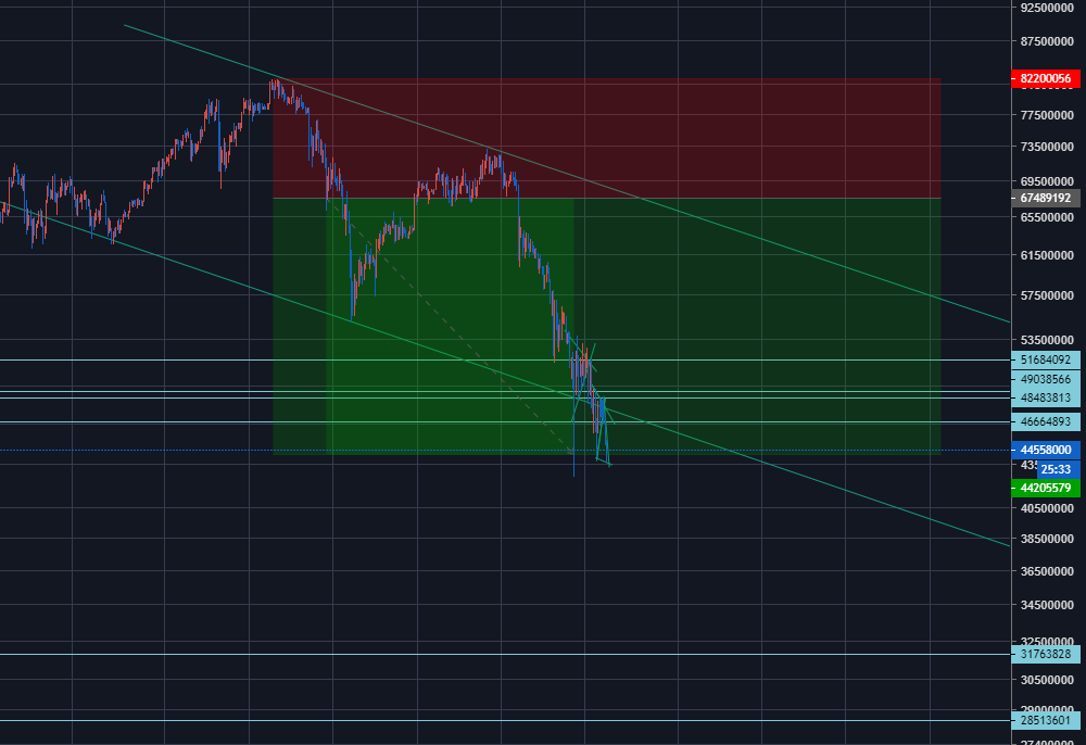 적어도 4,500만 원대의 지지선이 뚫린 만큼 3,000만 원까지는 천천히 하락할 것으로 예상하고 있다. 물론, 6월이 되면 메이저 코인의 호재가 기다리고 있기 때문에 반등 구간이 나올 수 있다. 하지만, 가격은 점차 하락하는 단계에 있다고 보고 있다.