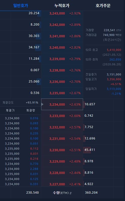 업비트 호가창 체결강도의 의미
