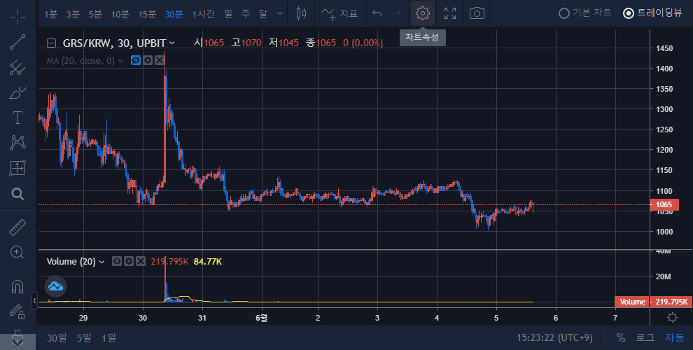 업비트 알트코인은 언제 상장폐지가 되어도 이상하지 않을 정도로 거래량이 없다. 업비트에서는 이제 트레이딩을 해야 할 일이 별로 없는데, 업비트에서 바이낸스로 트론이나 리플을 보내는 용도 외에는 거래를 잘 안 하게 될 것 같다. 다만, 남은 원화가 있어서 매번 저점 매수하기도 힘들 것 같아서 펌핑 코인 아무거나 진입해서 펌핑될 때까지 기다리는 것이다.
