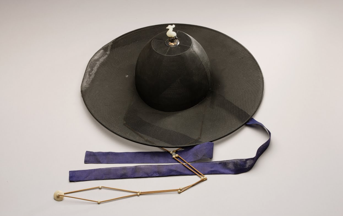 조선시대 양반 남자들이 쓰던 갓이다. 모정이 둥글고 꼭대기에 청백리를 상징하는 옥으로 만든 해오라기[玉鷺]를 달았다. 대나무를 가늘게 잘라 갓의 틀을 짜고, 겉면에는 다시 고운 옷감으로 배접하여 검은색을 덧칠하였다. 갓끈[纓]은 상아와 가는 대통을 꿰어 턱밑에 늘이고 남색끈을 달아 고정하였다.