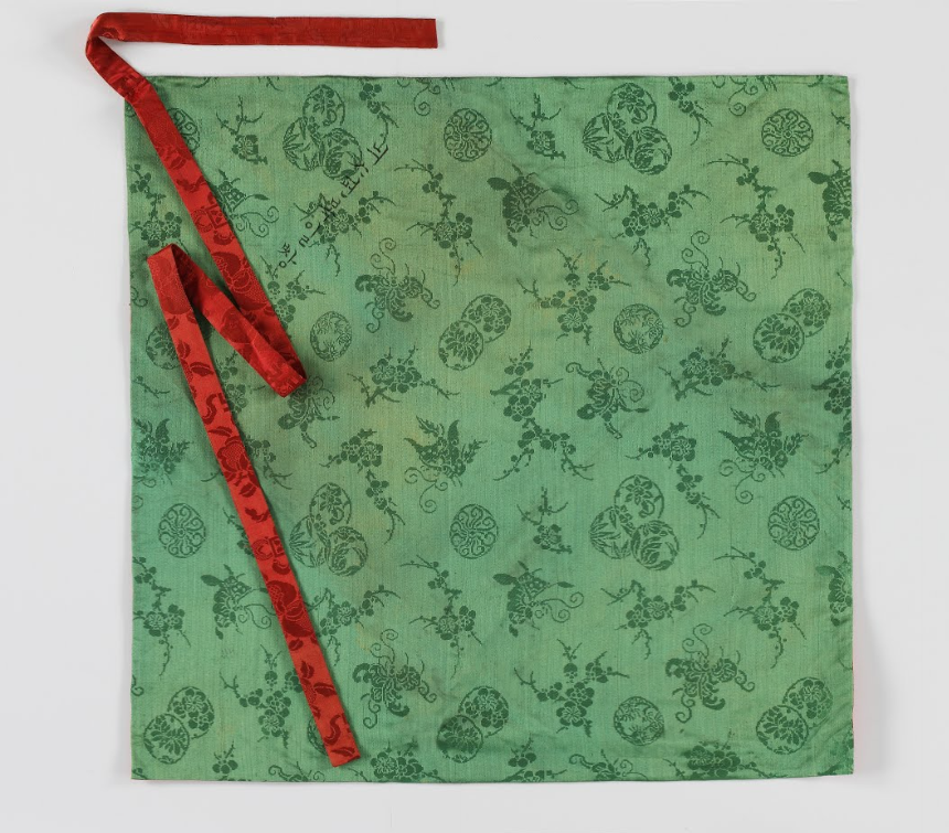 영친왕비의 니사쌍향갑단작노리개[泥絲雙香匣單作佩物]를 쌌던 겹보자기이다. 겉감은 소나무, 대나무, 꽃을 작은 원형으로 도안한 무늬와 매화 사이를 날고 있는 나비문이 장식된 초록색 단(緞)이고 안감은 무늬가 없는 주홍색 명주(明紬)이다. 겉감에 "늬사편복일쌍"이라는 내용물을 적은 묵서가 있다. 보자기 끈은 칠보문(七寶紋)과 석류문이 시문된 홍색 단이며 홍색 실로 ‘십(十)’자형으로 박음질하여 고정시켰다.