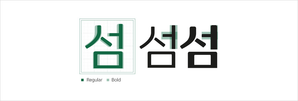 완도청정바다체는2종의 굵기를 가지고 있으며,동일한 글자의 뼈대를 바탕으로 획의 굵기대비에 차이를 주어 특색을 더했습니다.Bold는 가로, 세로의 획 굵기 대비에 차이를 두어 독특한 이미지를 주며, 주목성이 뛰어납니다. Bold는 문서상에서 제목, 소제목에 적합합니다. Regular는 본문의 사용 용도에 맞도록 시각적으로 가로, 세로가 균일한 굵기대비를 가지며, 본문용에 적합합니다.