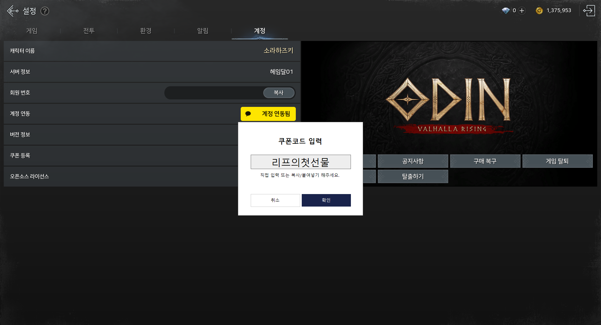 1. 오딘: 발할라 라이징 쿠폰 번호 리스트
