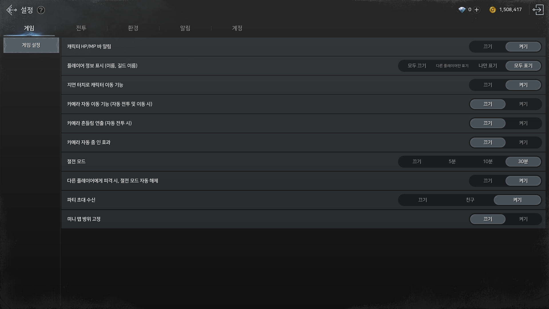 게임을 시작할 때, 개인적으로 매우 중요하다고 생각하는 부분은 바로 게임 카메라 설정이다. 기본적으로 게임 카메라 설정을 할 수가 있는데, 중립 카메라를 하고 카메라 흔들림 연출(자동 전투 시)을 끄고, 카메라 자동 줌 인 효과를 끄면 눈이 아프지 않다. 오히려 너무 화려하기 때문에 이 기능을 끄는 것을 추천한다.