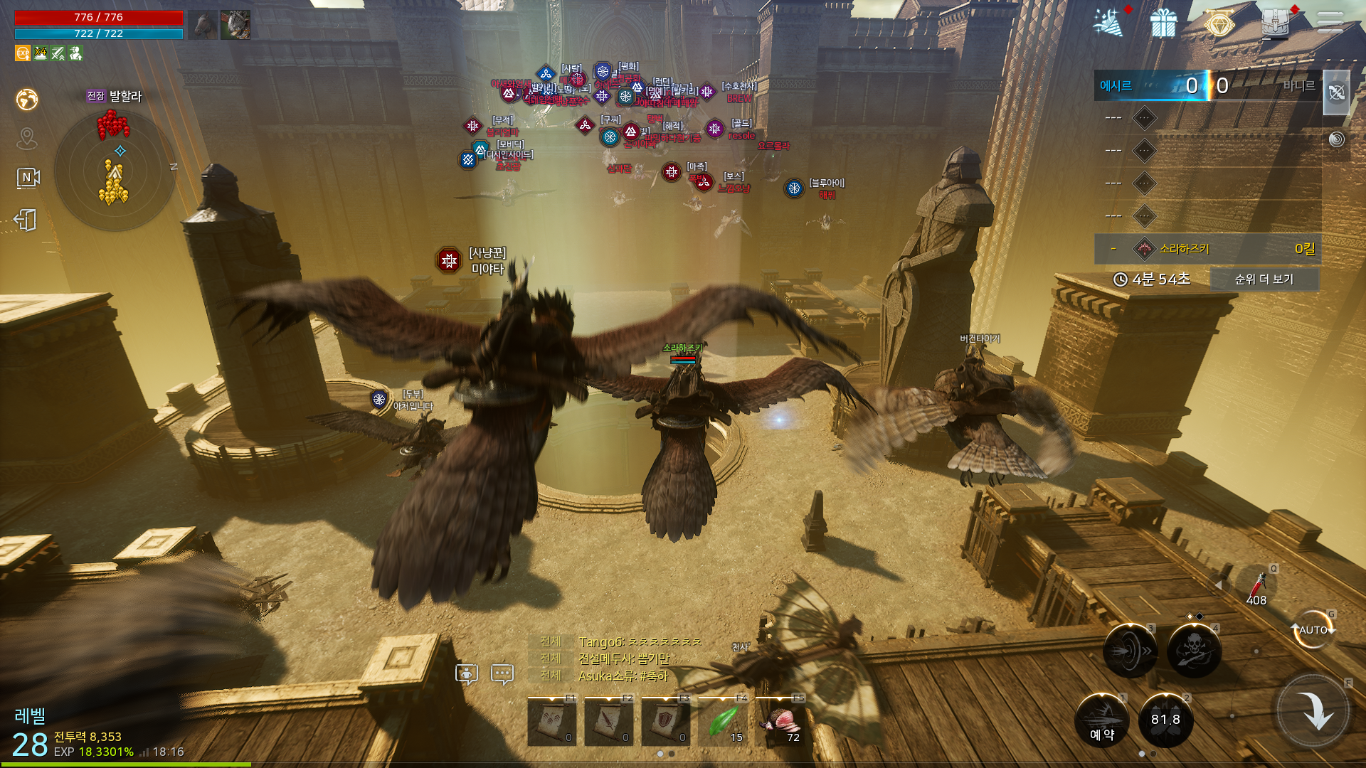 회복 포션의 경우에는 마을상인이 판매하고 있으므로 떨어지면 주기적으로 구매를 해줘야 한다. 기본적으로 회복 물약은 650개까지 구매가 가능하다. 물론, 탈 것에 따라서 최대 물약 소지 개수가 달라진다. 이외에 채팅창도 굉장히 활발해서 자동사냥이지만, 게임 내에서 재미를 찾을 수 있다. 하지만, 이 게임의 가장 큰 장점은 바로 보스전이라는 것이다.