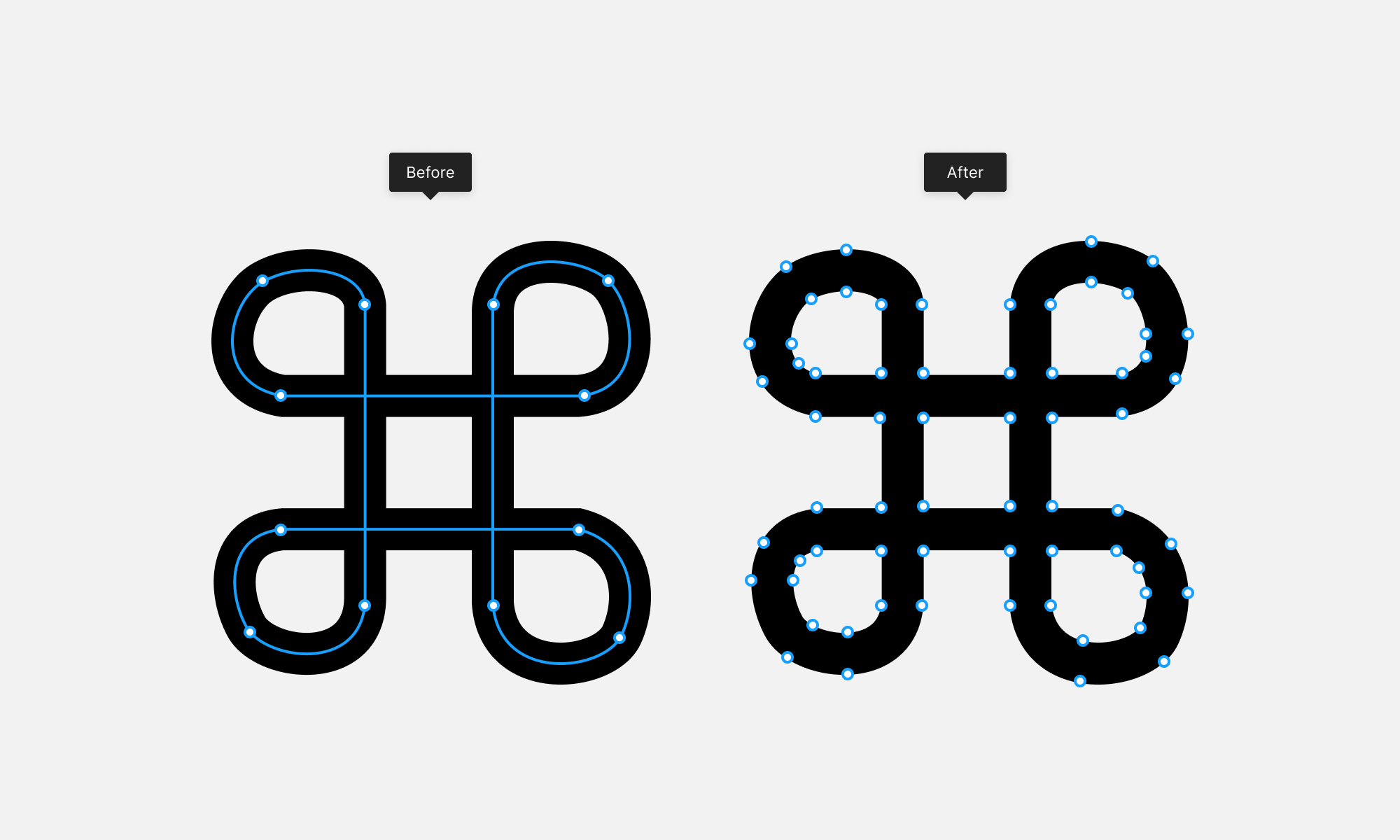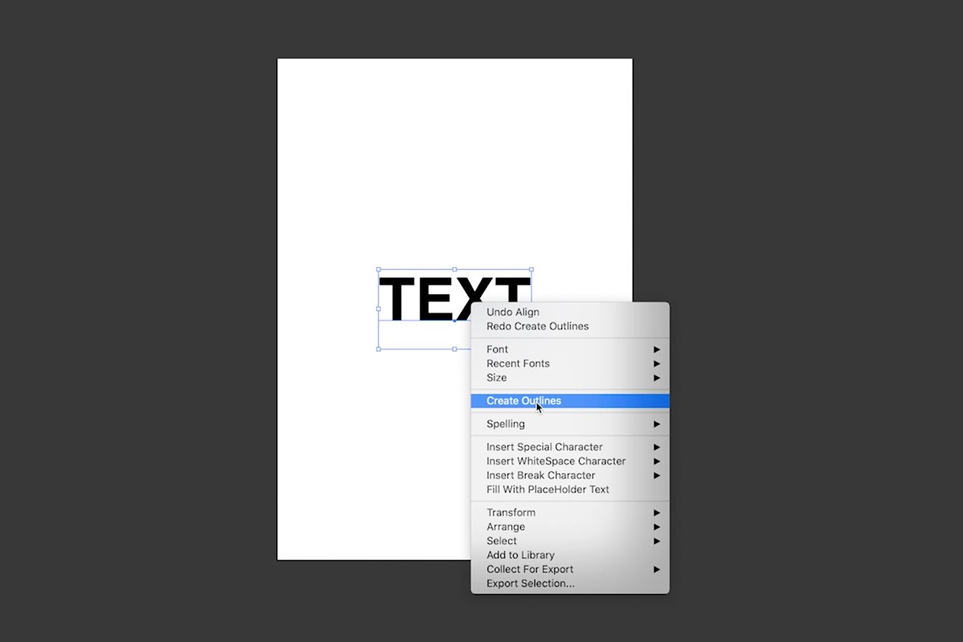 보통은 단축키로 활용하기 때문에 Type-Create Outlines 를 적용하고자 하는 오브젝트나 그룹을 드래그해서 선택하고 Ctrl+Shift+O를 누르면 글자 깨기가 됩니다. 이렇게 하면 글자에 아우트라인이 되며, 텍스트는 래스터화가 되어 더 이상 텍스트 내용을 수정할 수 없습니다. 또한 하나씩 모두 그룹화가 되어있기 때문에 그룹을 해제하면 글자가 하나씩 분리가 됩니다. 글자 효과를 주기 위한 방법으로 사용되기도 합니다.
