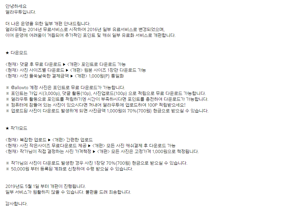 기존의 얼라우투를 굉장히 잘 이용했고 이해가 가면서도 이 현실이 조금 씁쓸하게 느껴졌다. 국내 시장이 워낙 작기도 하고 만약 얼라우투가 해외에서 서비스가 되었더라면 이런 문제가 발생하지 않았을 것이다. 2014년부터 정말 꾸준히 사용해왔던 얼라우투, 앞으로 어떻게 될지 궁금하기도 하고 응원하는 마음으로 글을 써본다.