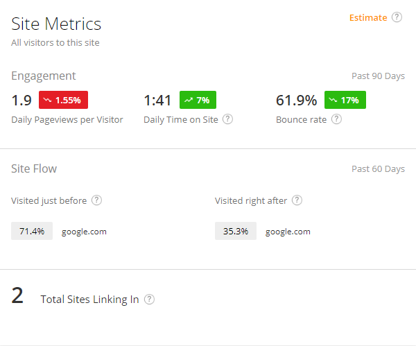 또한, 트래픽별 상위 키워드를 쉽게 확인할 수 있어 자신의 웹사이트에 많은 방문자가 발생하는 콘텐츠를 다시 분석할 수 있을 것이다. 결과적으로 글로벌 랭킹은 트래픽 메트릭을 통해서 확인할 수 있으며, 이 사이트의 순위가 나타난다.