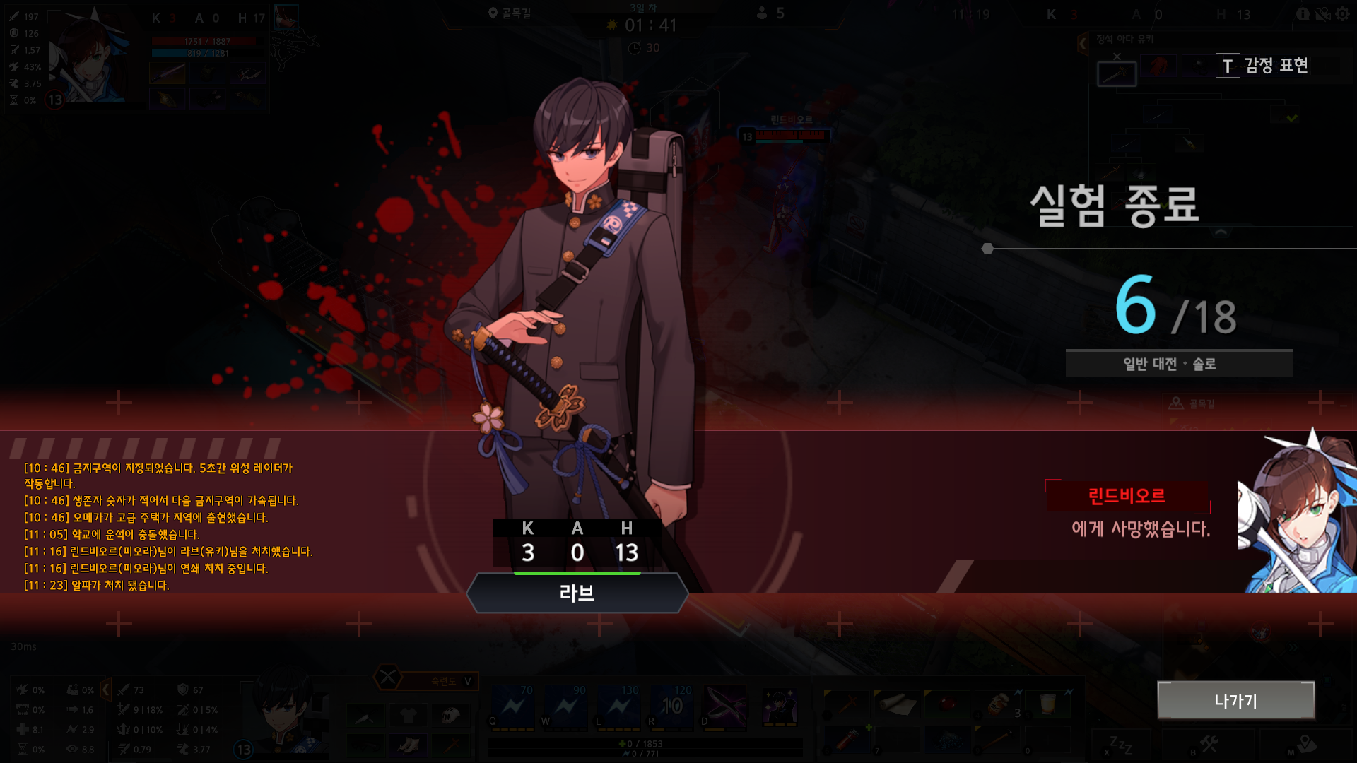 게임 결과는 18명 중에 6위로 마감했다. 솔직히 말해서, 아이템 제작 방법만 알았으면 이렇게 되진 않았을 것이다. 후반부에 아이템을 어떻게 제작해야 하는지 몰라서 버린 시간들이 너무 많았다. 필요 없는 아이템만 제작하고 말이다. 그리고, 생각보다 아이템이 굉장히 많이 나오고 또 종류가 많으므로, 내게 필요 없는 아이템은 잘 골라내야 한다.