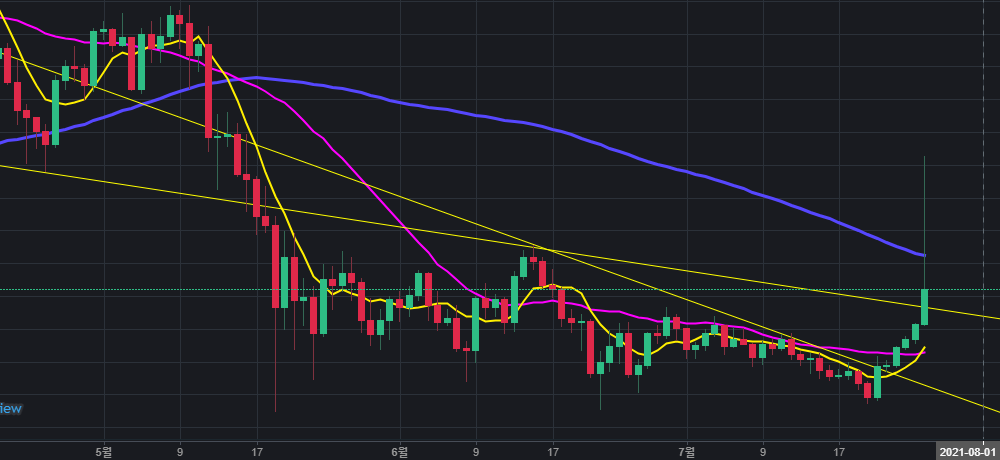 추가적으로 아마존이 2022년 자체 암호화폐 발행을 모색하고 있다고 전했다. 앞서 아마존은 디지털 통화 및 블록체인 팀 총괄 포지션 채용 공고를 낸 바 있다. 이와 함께 비트코인의 매도세가 약화되고 단기 하락 추세선이 깨지며 추세 전환이 이뤄진 느낌이다.