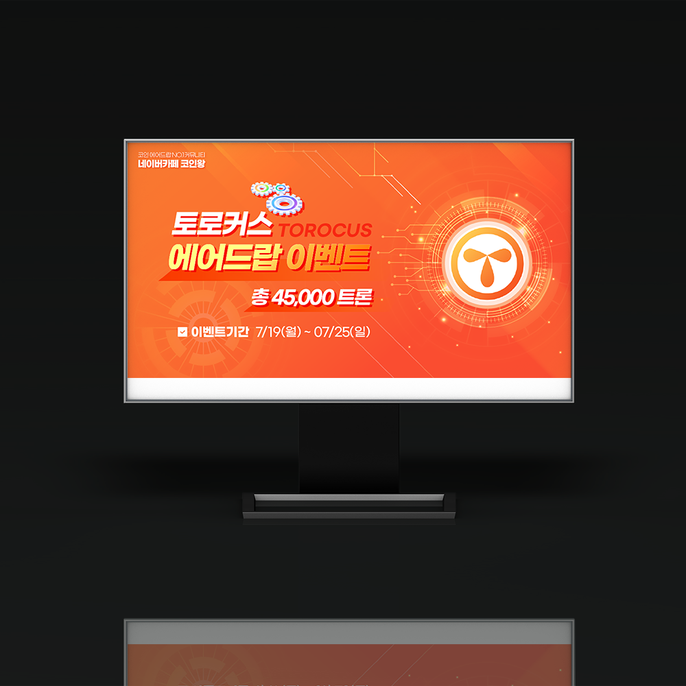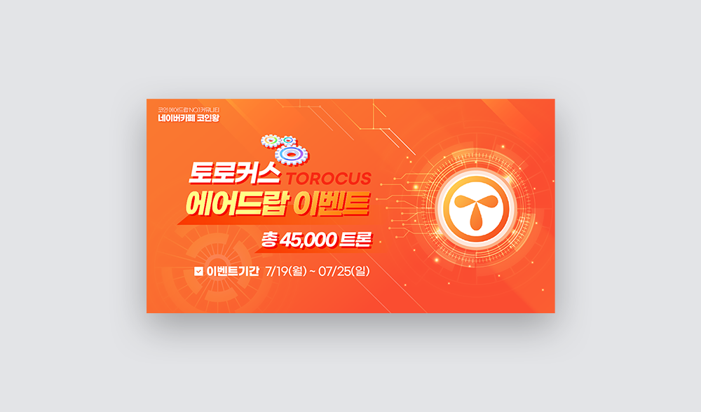 | 프로젝트 | 토로커스 에어드랍 이벤트 배너, 다소 빠르게 제작해야 했기 때문에 아쉬운 부분이 있을 수 있다. 토로커스의 컬러와 로고의 조화로움을 고려해서 제작되었다. 간단한 배너로 활용하기 위해 제작된 작업물이다. |
