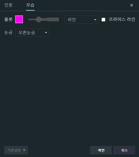이외에 별도로 세팅해야 할 것은 별로 없다. 보통 진입과 이탈을 할 때, 시장가로 진입하는 경우가 많다. 굳이 지정가로 할 필요가 없기 때문이다.