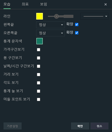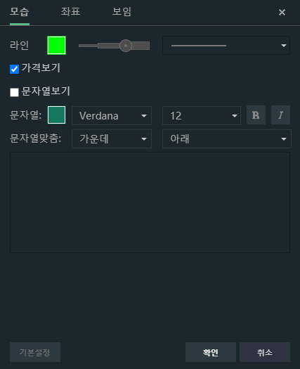 내 경우에는 시장이 박스권 내에서 돌고 있다면 가로줄, 상승과 하락이 명확하다면 확장을 활용해서 추세를 본다. 강한 저항과 강한 지지가 발생하는 구간은 반드시 트레이딩을 할 때 참고해야만 한다. 굵기 정도를 주고, 색상은 보통 형광색을 활용한다.
