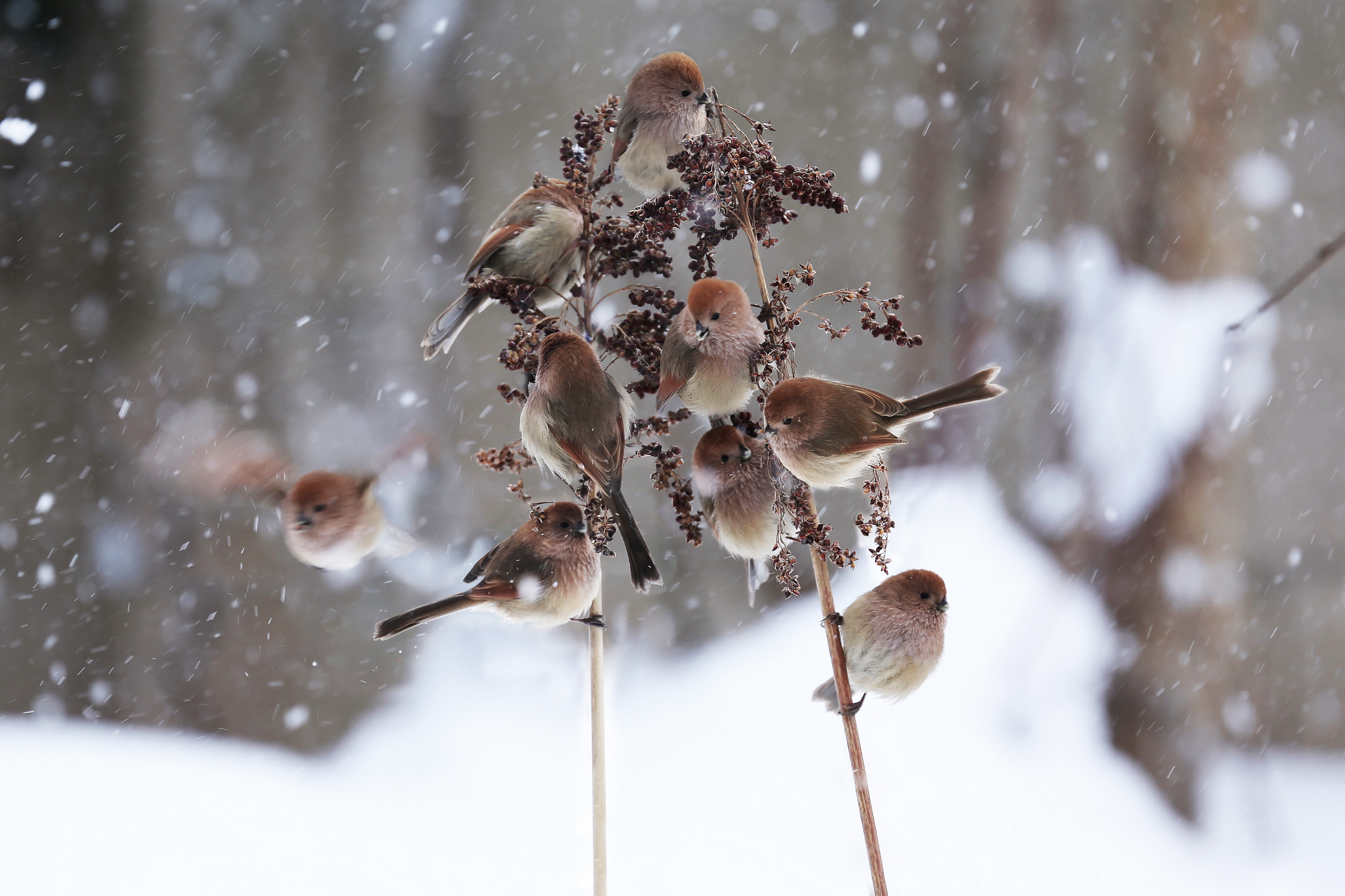 겨울에는 거의 항상 같은 종끼리 떼를 지어 다니며 덤불이나 키가 큰 풀 사이에 단체로 숨기를 좋아한다. 사람이 가까이 가면 단체로 숨느라 난리법석. 또, 나뭇가지 사이에서 이동할 때는 징검다리 건너듯이 가지를 하나하나 밟으며 이동한다.