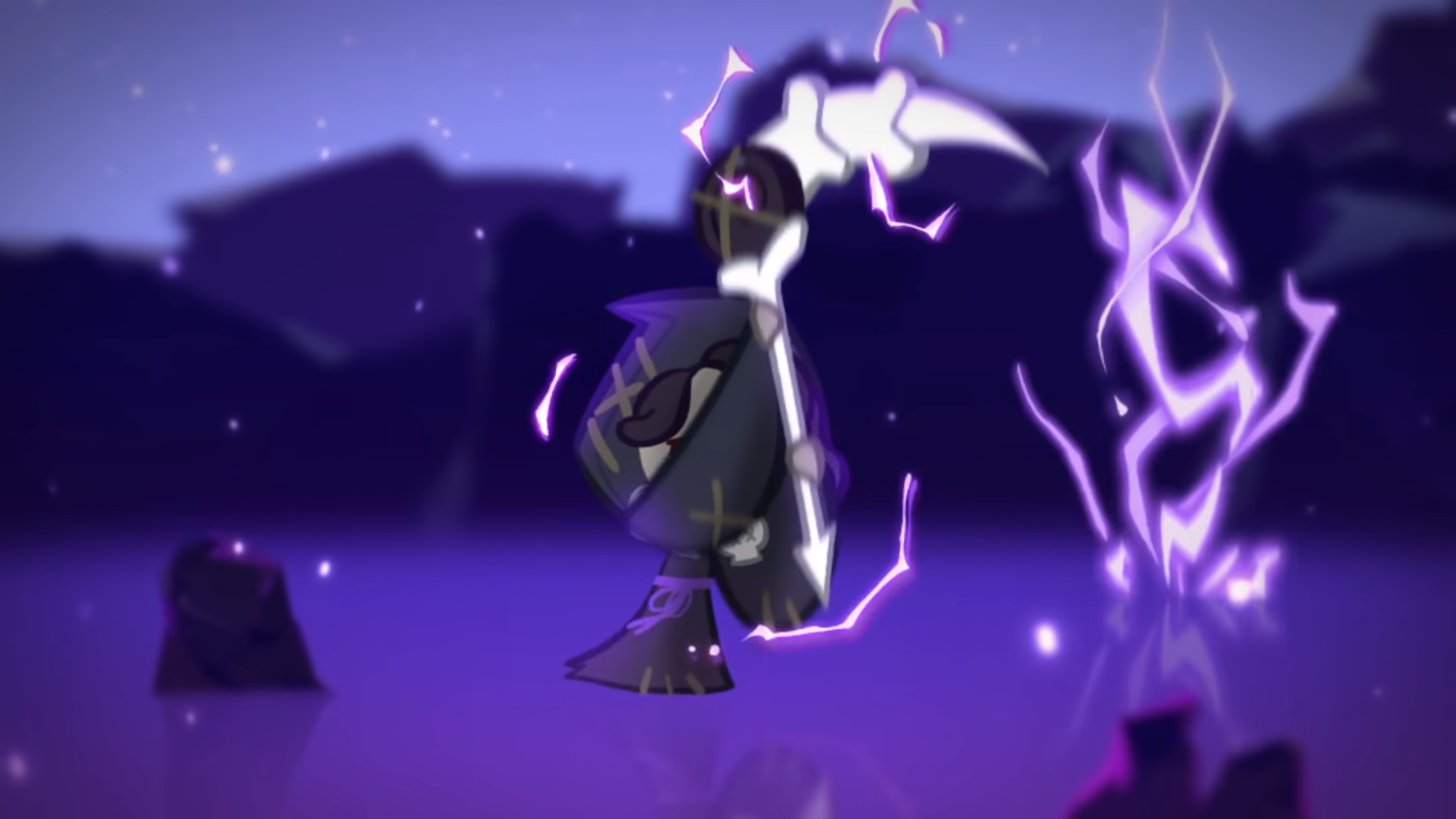낫을 바닥에 찍고 지상에서 살짝 떠오른 뒤 검은 번개를 내리쳐 적들에게 피해를 주면서 밀쳐내고 감초 해골 병사를 소환하며 팀 전체의 방어력 증가 버프를 건다. 검은 번개 딜은 매우 강력하지만 사거리가 아군 전열 바로 앞이기 때문에 밀어내는 스킬을 가진 아군이 스킬을 먼저 쓴다면 딜이 증발해버린다. 스킬 발동도 선딜이 1초 정도 있어서 CC기에 취약하다. 대신 제대로 꽂히면 아무도 살아나갈 수 없다. 소환되는 해골들은 바로 "돌격 젤리 해골"이다.