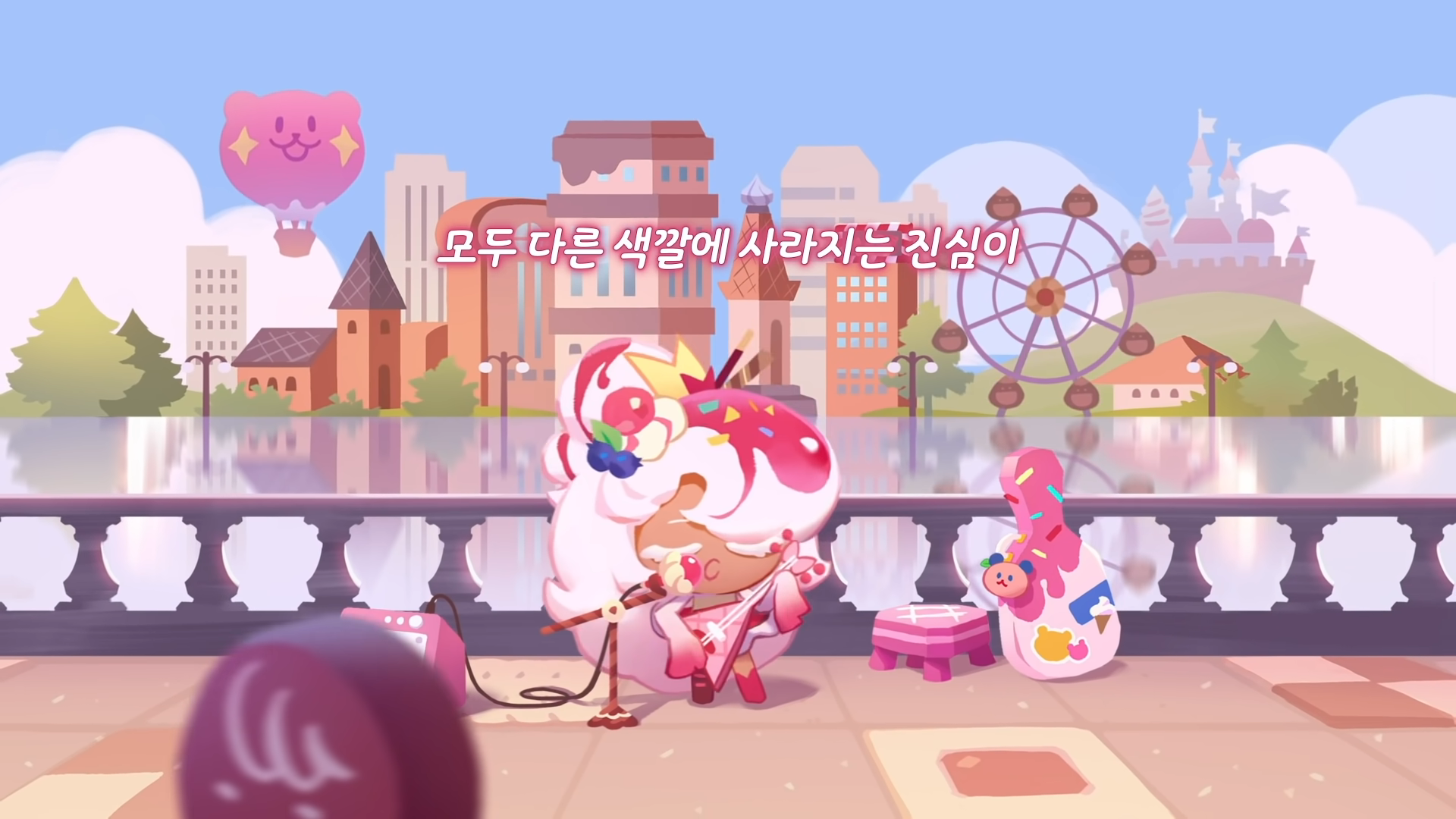 알록달록 다양한 맛의 토핑처럼 여러가지 개성있는 멜로디를 만들지만, 사실은 그 아래 깔린 하얀 아이스크림처럼 솔직한 마음을 노래한다. 오디션에 떨어져도, 알아보는 쿠키가 없어도, 심지어 지나가던 여름 소나기에 준비한 토핑이 전부 녹아내려도 상관없다! 꾸미지 않은 진심이 전해질 수 있도록, 언제까지나 기타를 치며 노래할 테니까.