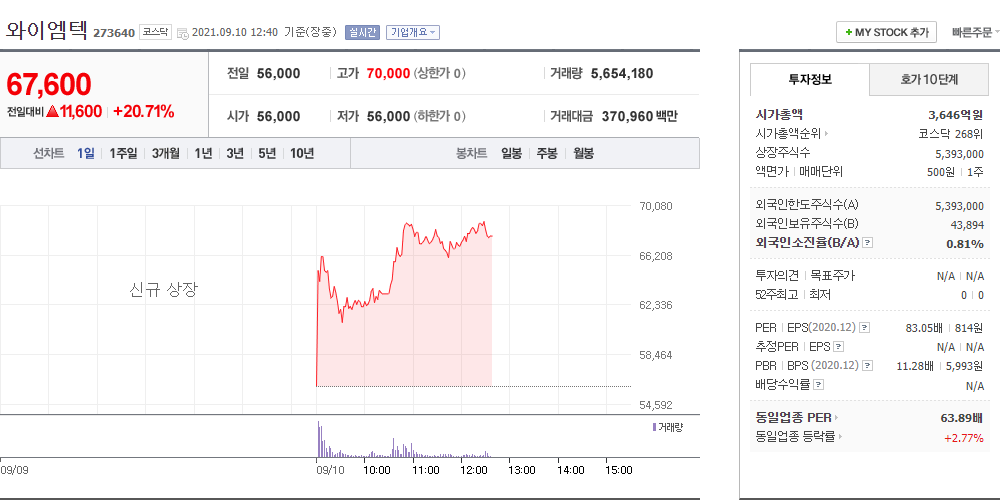 2. 와이엠텍 상장