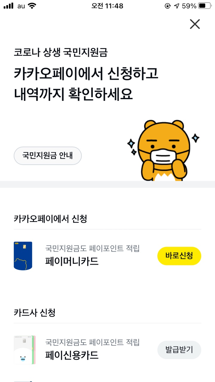 | 카카오 페이카드 발급 및 국민지원금 신청 카드 (0) | 2021.09.01 |