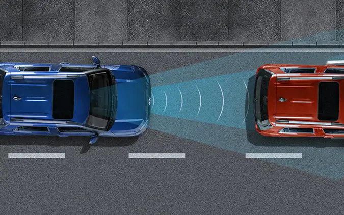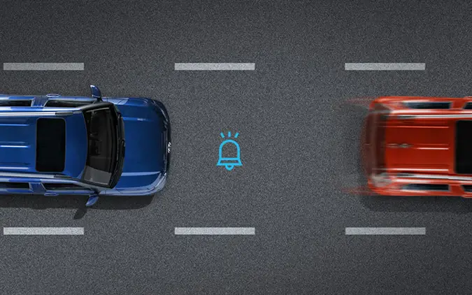 선행 차량이 갑자기 속도를 줄이거나 전방에 정지한 차량, 보행자, 자전거 탑승자와의 충돌 위험을 감지하면 경고를 해주고, 경고 후에도 충돌 위험이 높아지면 자동으로 제동을 도와줍니다.