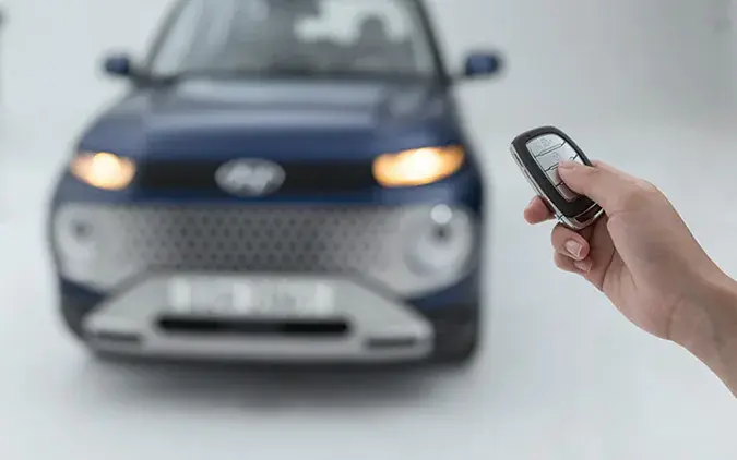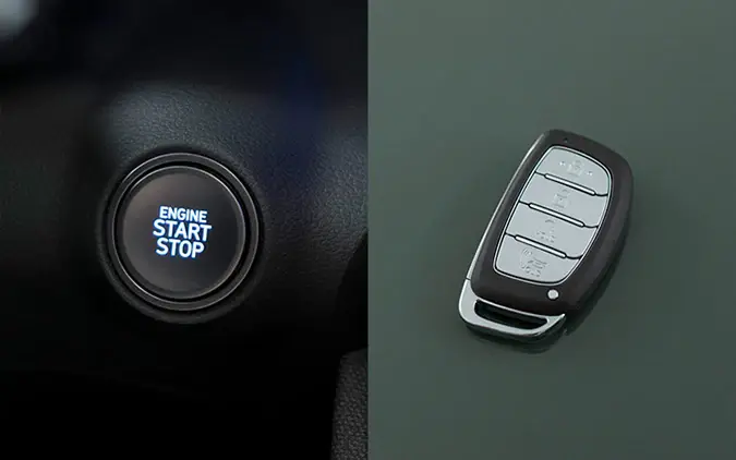 스마트키의 원격 시동 버튼으로 원격으로 시동을 걸 수 있습니다. 차량과 10m 이내에서 도어 잠금 버튼을 눌러 도어를 잠근 후 4초 이내에 원격 시동 버튼을 2초 이상 누르면 시동이 걸리며, 비상등이 깜빡여 시동이 걸렸음을 알려줍니다. 원격 시동을 끄고자 할 경우에는 원격 시동 버튼을 1회 누르면 시동이 꺼집니다. 냉/난방 장치는 차량에 시동을 끄기전에 설정된 상태로 작동이 됩니다.