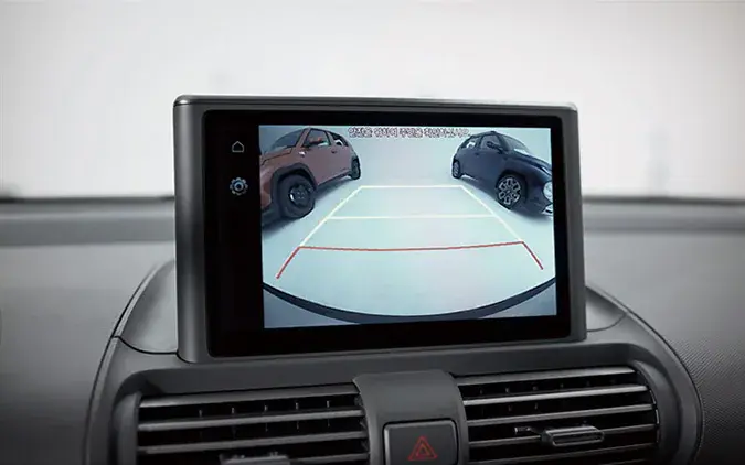 주차 시 후방 상황을 영상으로 보여줍니다. 광각-후방 카메라를 이용하여 후방 영상 및 고정/조향 가이드라인을 보여줍니다.