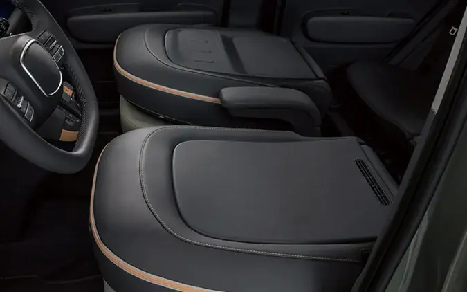 동승석은 물론, 국내 최초로 운전석까지 폴딩할 수 있는 기능을 적용하여 전좌석을 폴딩하여 차박 등 실내공간에서 편안하게 누워 쉬고 싶을 때 캐스퍼를 나만의 휴식공간으로 만들 수 있습니다.