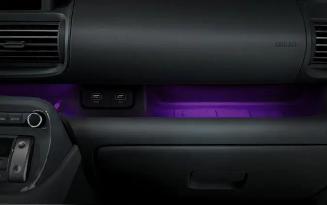 센터페시아 부분에 은은한 조명을 비추는 기능으로 감각적인 퍼플 무드램프를 적용하여 인테리어 감성을 높였습니다.