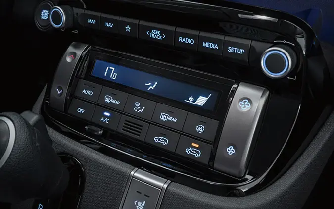 운전자가 설정한 온도로 실내 온도를 자동으로 유지하여 쾌적한 실내환경을 유지합니다. 온도 조절과 풍량 조절은 버튼을 이용하여 진행할 수 있습니다.