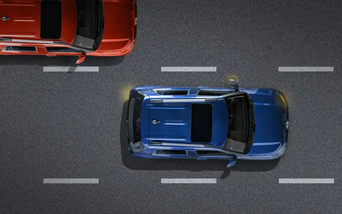차로 변경을 위하여 방향지시등 스위치를 움직였을 때, 후측방 차량과 충돌 위험이 감지되면 경고를 해주고, 경고 후에도 충돌 위험이 높아지면, 자동으로 차량을 제어하여 충돌 회피를 도와줍니다.